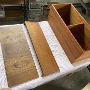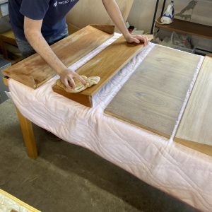 サンディングを終えた木部をきれいにして、オイルを入れ仕上げていきます