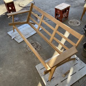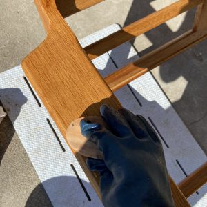 座面を外し、木部全体に剥離剤を塗り洗い流します