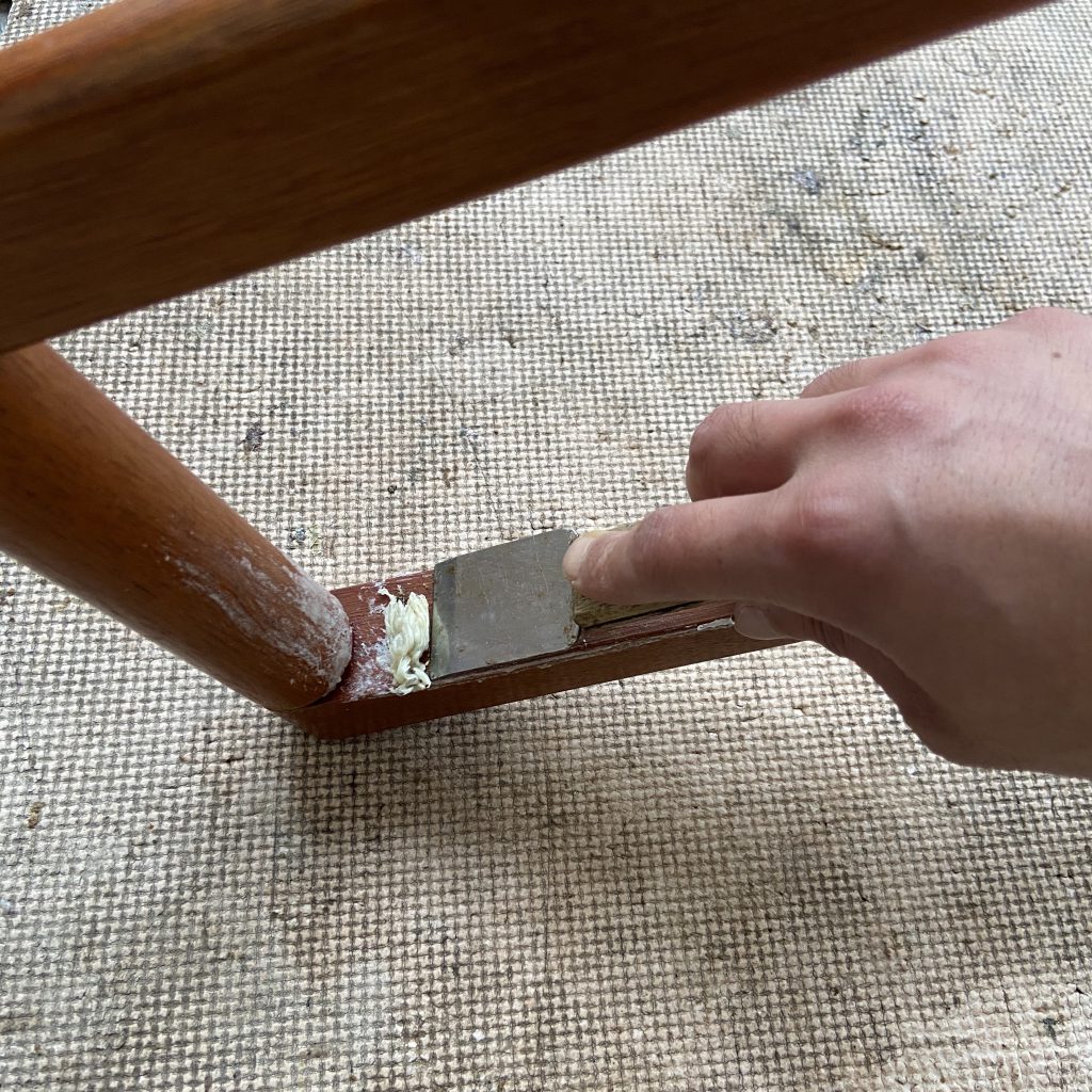 専用の薬剤を塗り、時間を置いてからスクレーパーで古い塗膜を剥がします