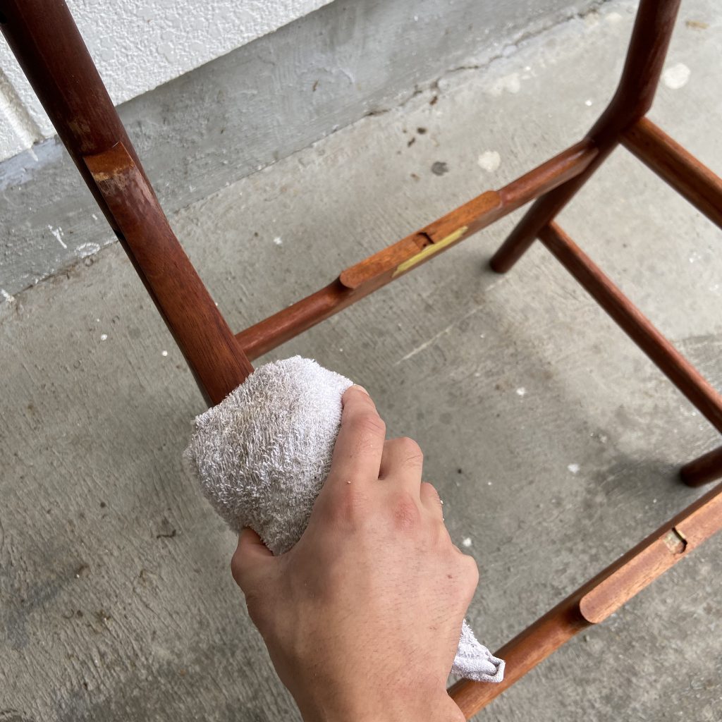 もう一度薬剤を塗り、今度はブラシを使い、残った塗膜と汚れを落としていきます
