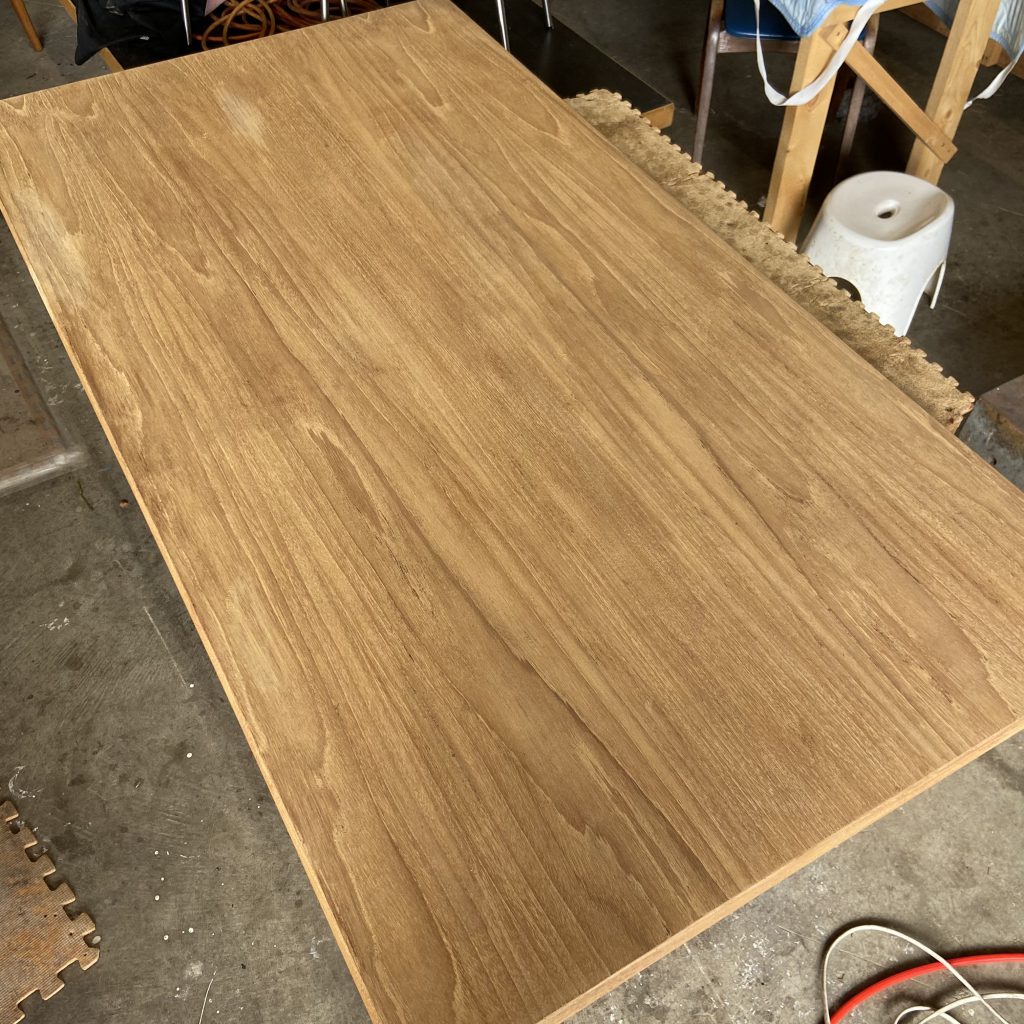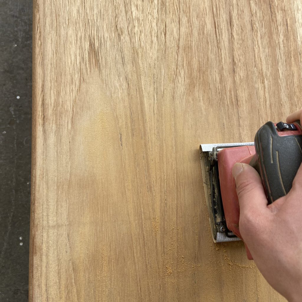 天板はサンダーを使い、全体の毛羽立ちと小傷を取り除き、細かい番手のサンドペーパーで仕上げます