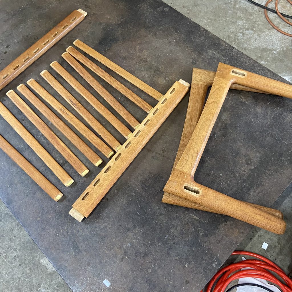GE290のオットマンのメンテナンス作業 材質はオーク 細か…