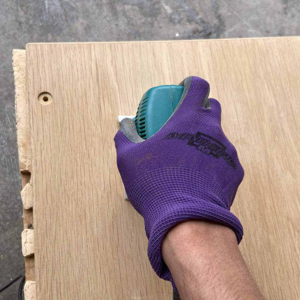 サンディングを終えた木部をきれいにして、オイルを入れ仕上げて…