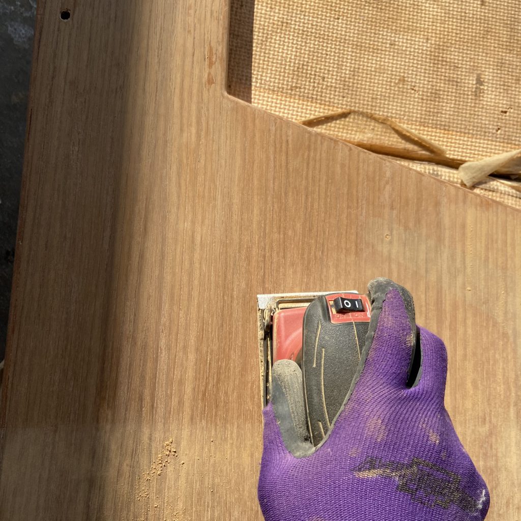 剥離後、しっかり乾燥させてからサンディングしていきます 木部…