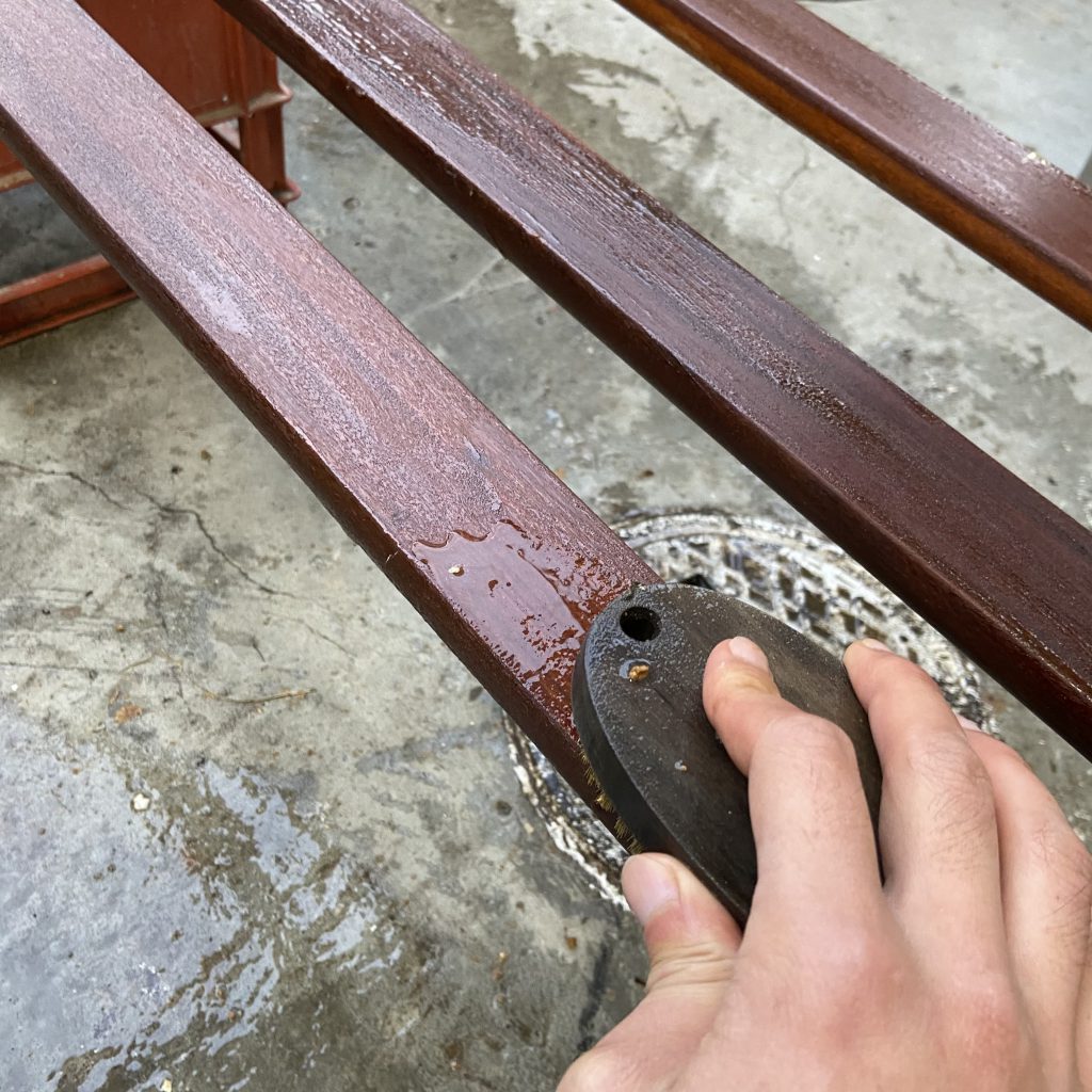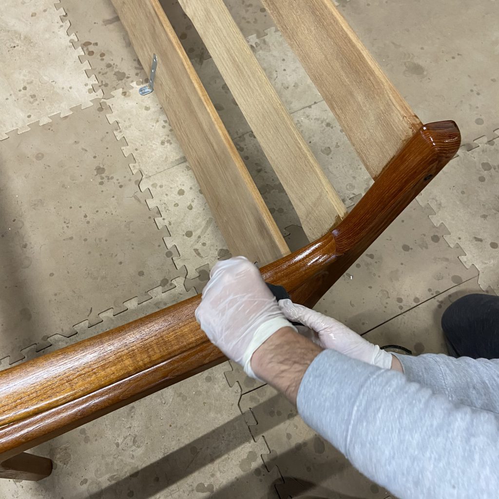 剥離、サンディングを終えた各パーツに、オイルを塗布していきま…
