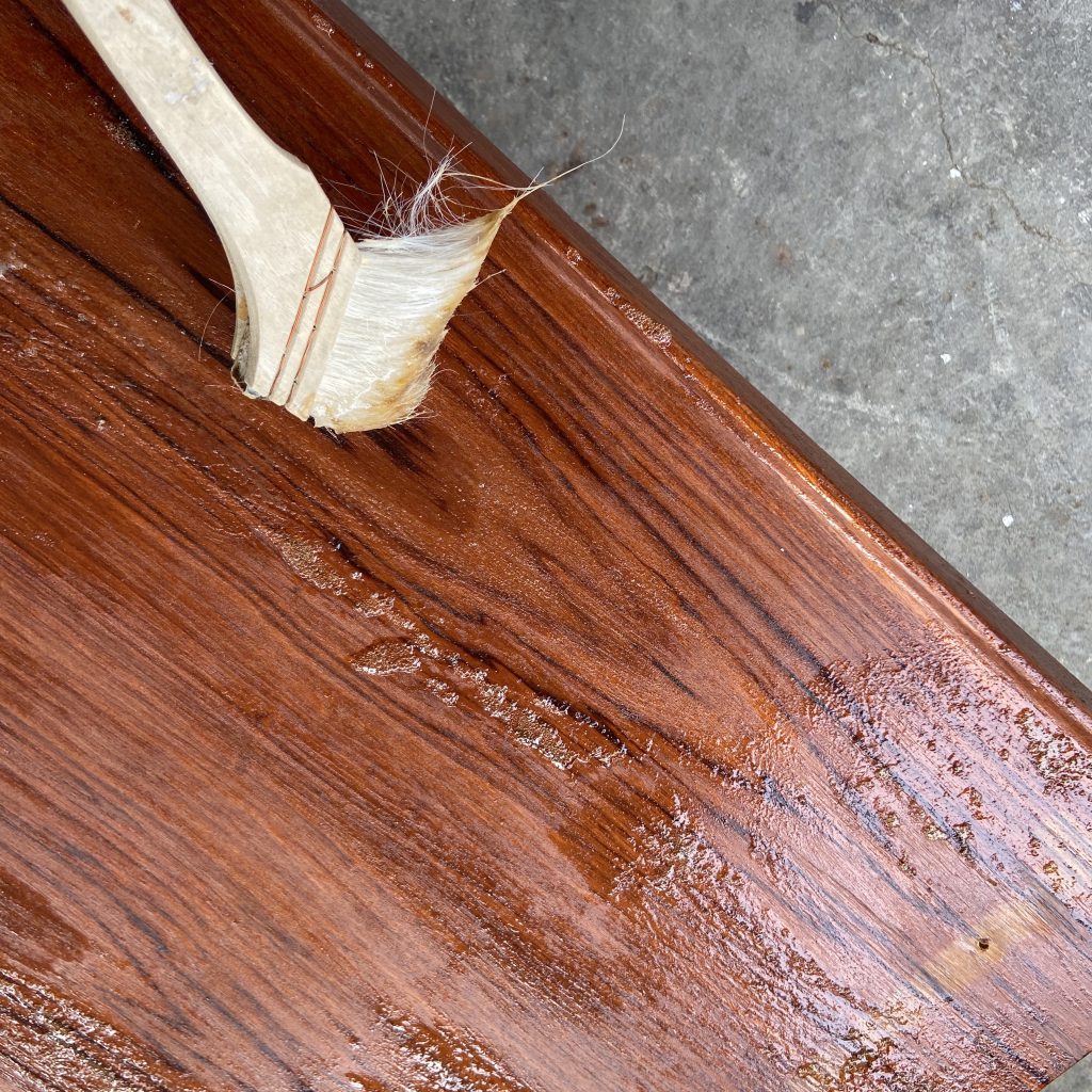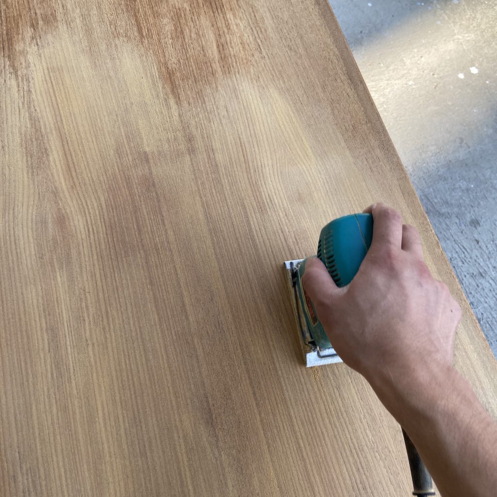 サンディング後、木屑をしっかり取り除きオイルを塗布します &…
