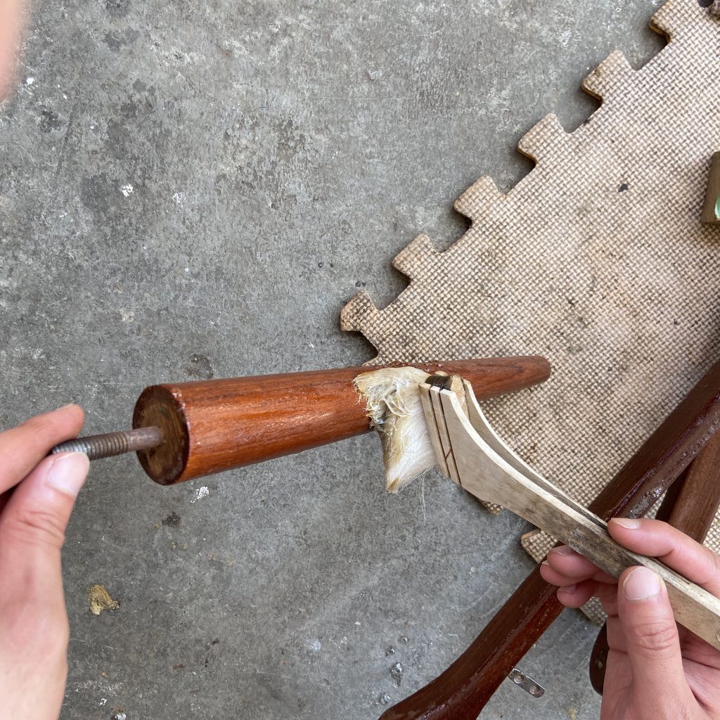 座面を外した後、木部に剥離剤を塗っていきます …