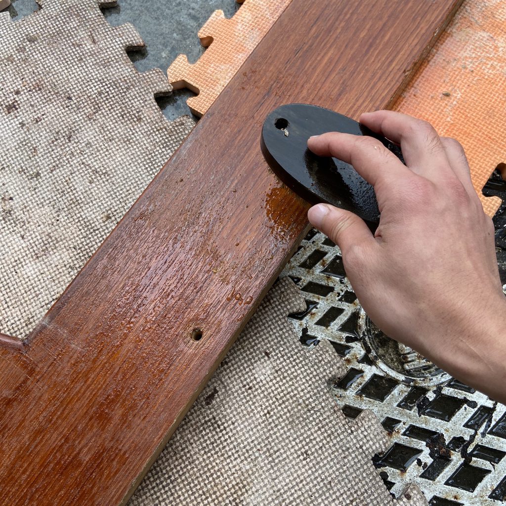 オイルを塗布し、少し時間を置き、乾拭きで余分なオイルをしっか…