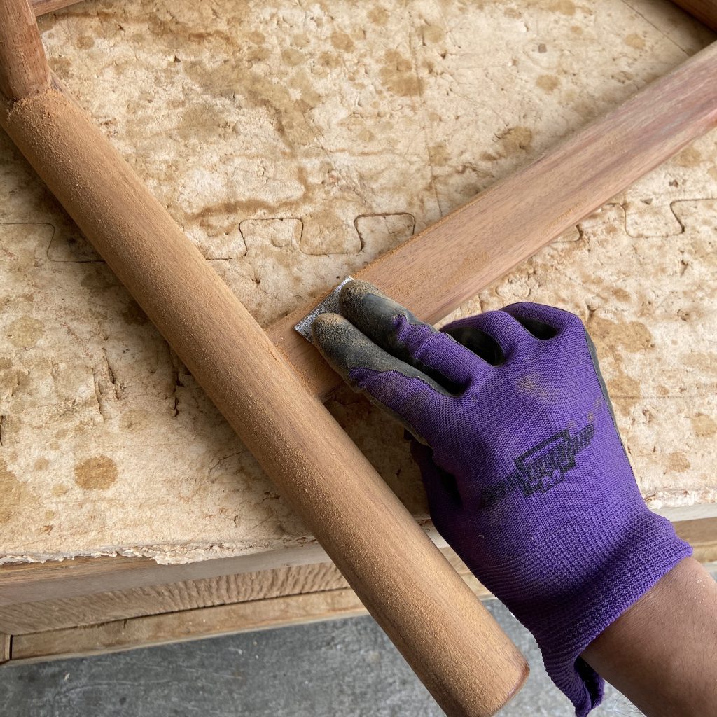 剥離した木部をしっかり乾かした後、サンドペーパーを使いサンデ…